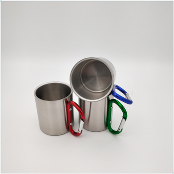 좋은 품질 220ml 300ml 이중 벽 등반 카라비너 여행 머그 손잡이 스테인레스 스틸 캠핑 카라비너 커피 컵