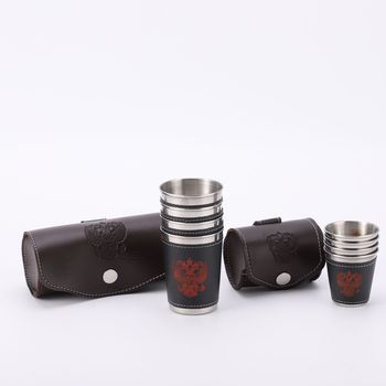 Toptan açık Mini deri sarılmış 30/70/180ml fincan kişiselleştirilmiş özel Logo paslanmaz çelik bardak kamp için